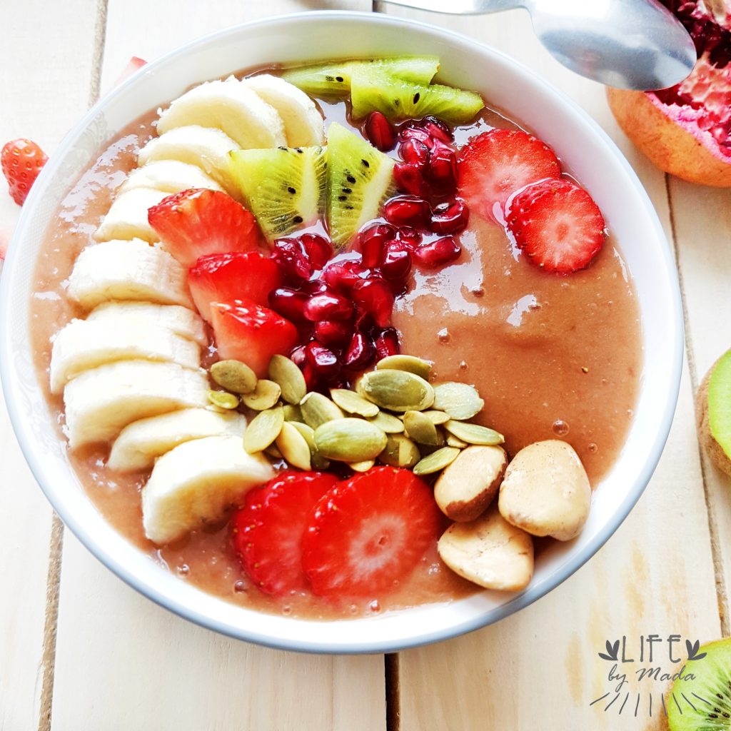Na szczęście teraz już to się zmieniło i wiele osób uważa, że owoce powinny być podstawą naszego [ludzkiego] żywienia. Ja się z tym zgadzam i dzisiaj prezentuję wam kolejną przepyszną miskę śniadaniowej rozkoszy. Piszę śniadaniowej, ale wiadomo takimi zdrowymi smakołykami można zajadać się o każdej porze dnia i nocy.